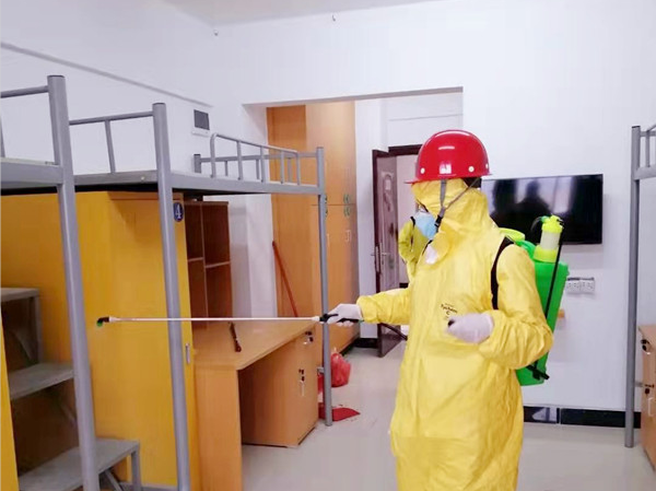 临近复工复产时间,切实做好返程人员的防控和隔离工作,就是降低疫情风险系数的关键所在。因此,防疫隔离区的清洁卫生工作也容不得半点马虎,只有切实做好隔离区的清洁消毒和健康防护工作,努力营造清洁、卫生、安全的环境,才能巩固好前期疫情防控的工作成果。于是,平时工作认真、表现优异的刘当仙和殷冬仙便被委以重任,负责起隔离区的整体卫生清洁和消毒工作。