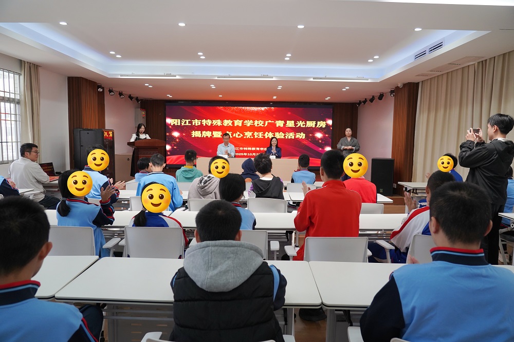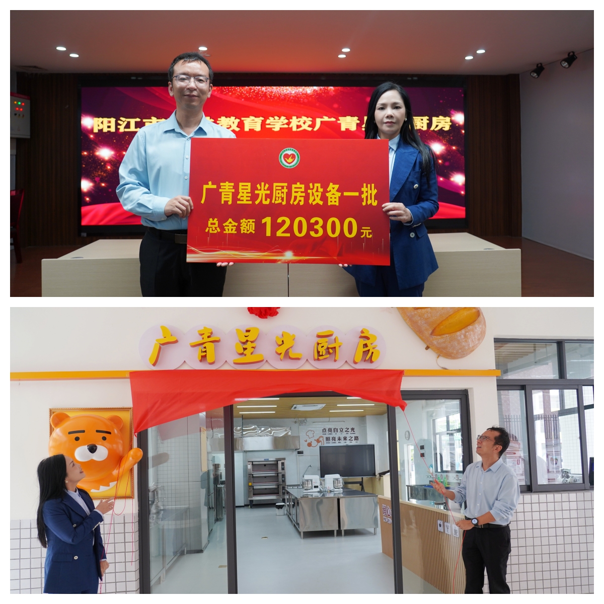 10月22日,广青科技联合青山慈善基金会向阳江市特殊教育学校捐赠一批烹饪实训室设备,共同打造“广青星光厨房”,进一步优化该校职业教育教学环境,为智力障碍学生熟练掌握烹饪技能提供硬件支持。