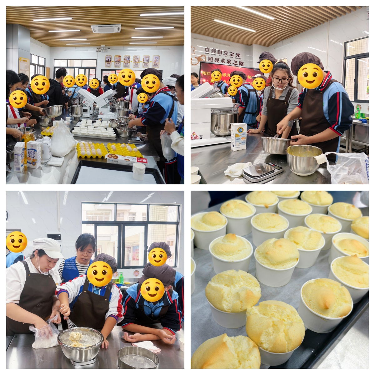 在随后开展的蛋糕制作活动中,烹饪专业的同学们在老师和志愿者的指导下,兴致勃勃投入实践操作,一步步完成杯子蛋糕的制作。现场欢声笑语不断,孩子们脸上洋溢着专注与喜悦,用双手烹调出对美好生活的向往。