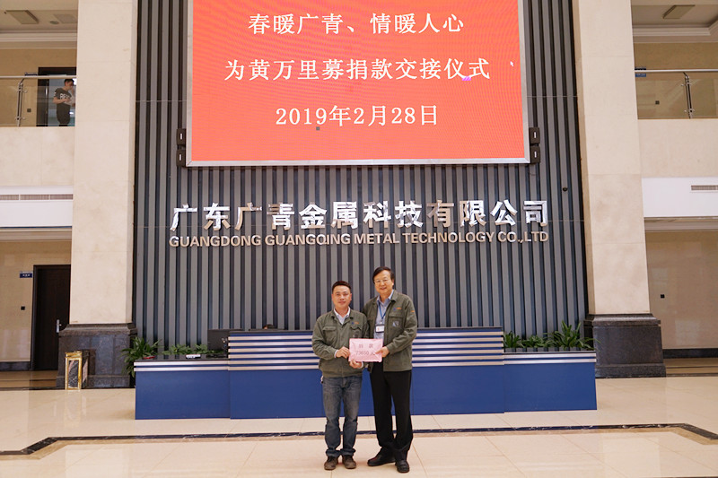2月21日,广东广青金属科技有限公司工会委员会为身患重病的炼钢厂AOD炉配气工黄万里向全体员工发起了爱心募捐活动。《捐款倡议书》一经发出,公司领导及广大员工积极响应,踊跃捐款,在一周时间内为黄万里筹得善款共74150元。