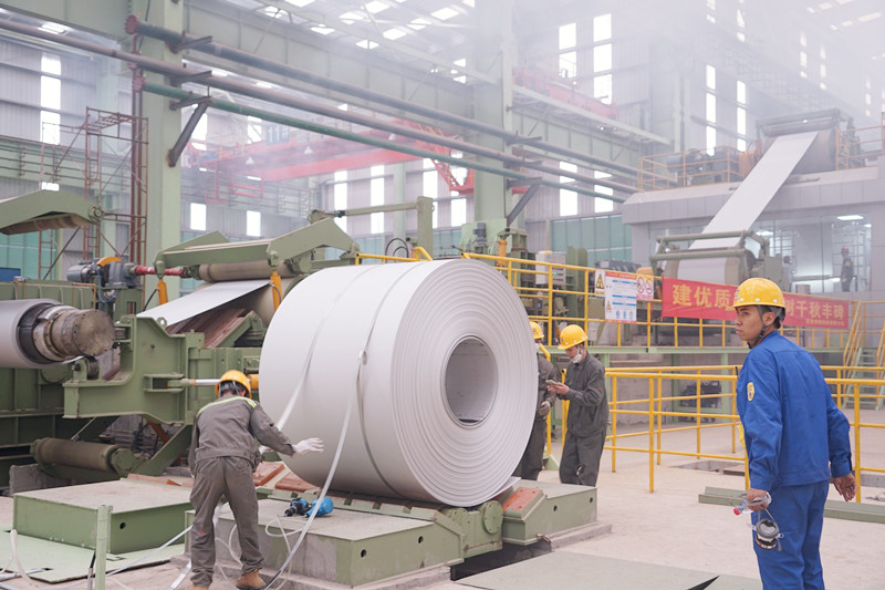 3月27日08时58分,广东广青金属压延有限公司退火酸洗1550mm生产线进行热负荷试车,成功产出了第一批304白皮钢卷。
