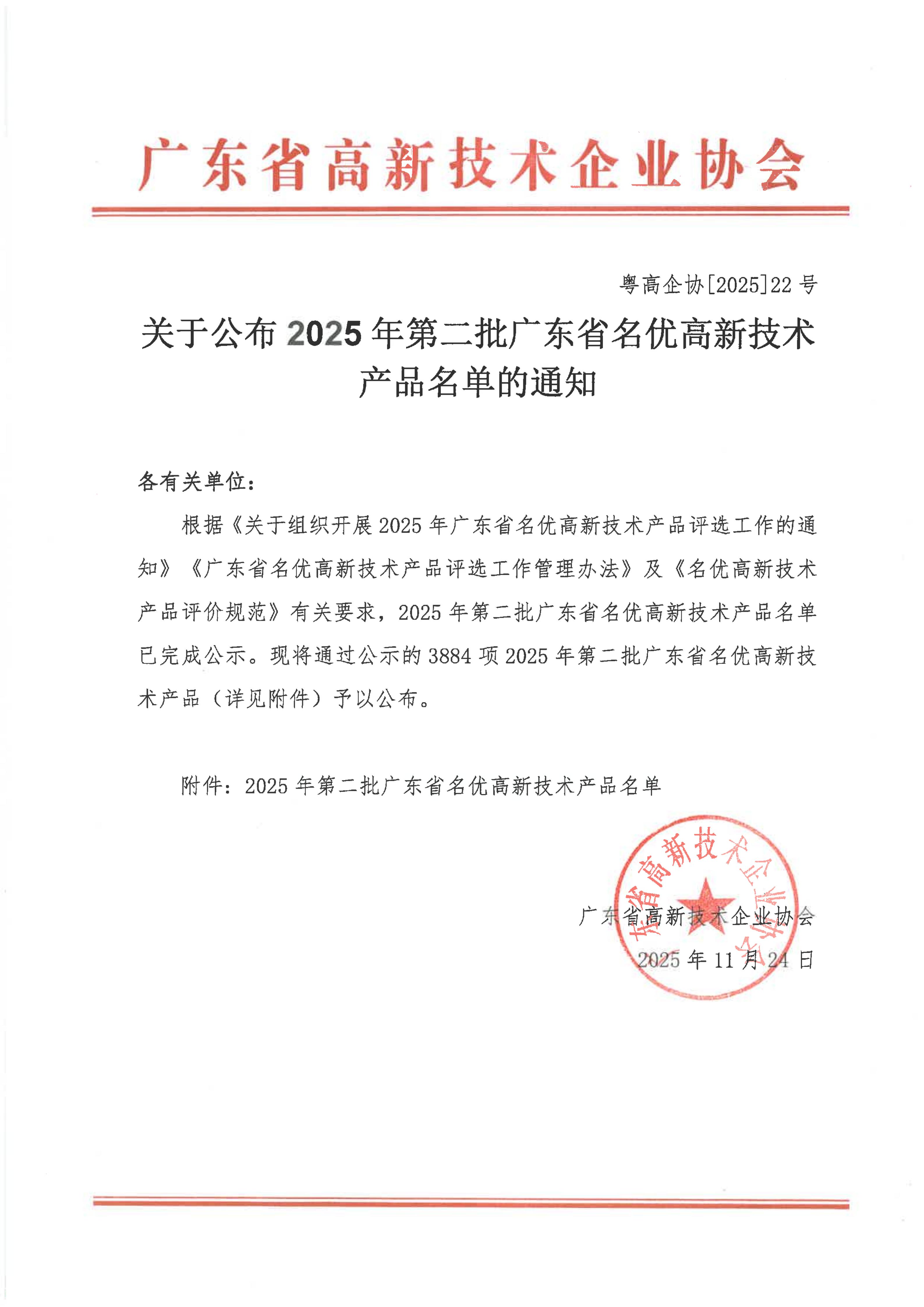 “广东省名优高新技术产品”评选由广东省科技厅与广东省高新技术企业协会共同组织,围绕产品的技术水平、知识产权、市场影响力、环保表现及所获荣誉等五大维度进行综合评价,旨在选拔出技术先进、创新能力强、质量可靠且具备良好市场前景的优秀产品。