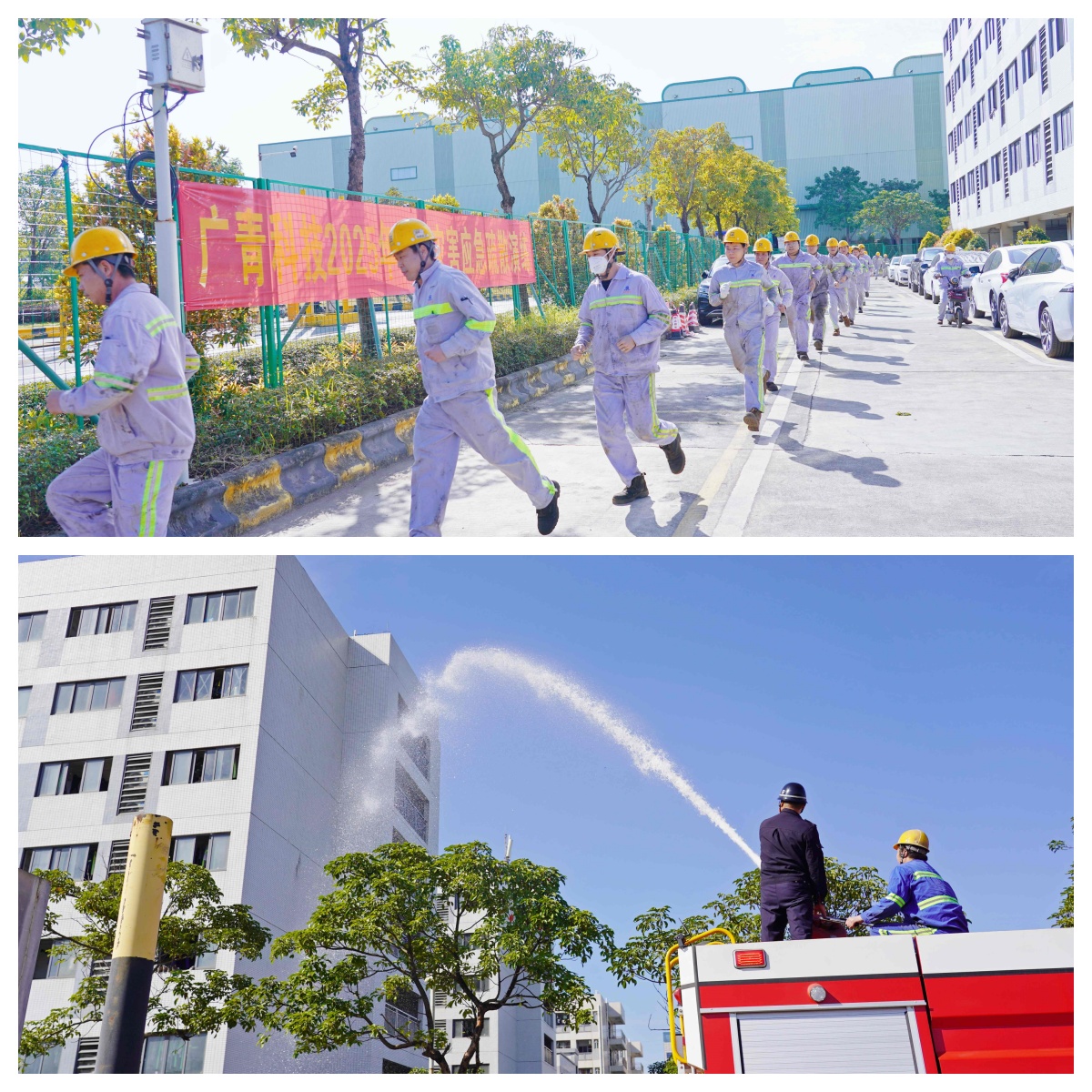 为切实提升公司消防安全管理水平与应急处置能力,11月22日,广青科技举办“全民消防、生命至上——安全用火用电”为主题的消防宣传月灭火实战演练。公司党委委员、常务副总经理刘光勇出席活动,公司安监部负责人、安全管理人员、兼职消防队员以及各厂部新入职员工代表220余人参加演练。