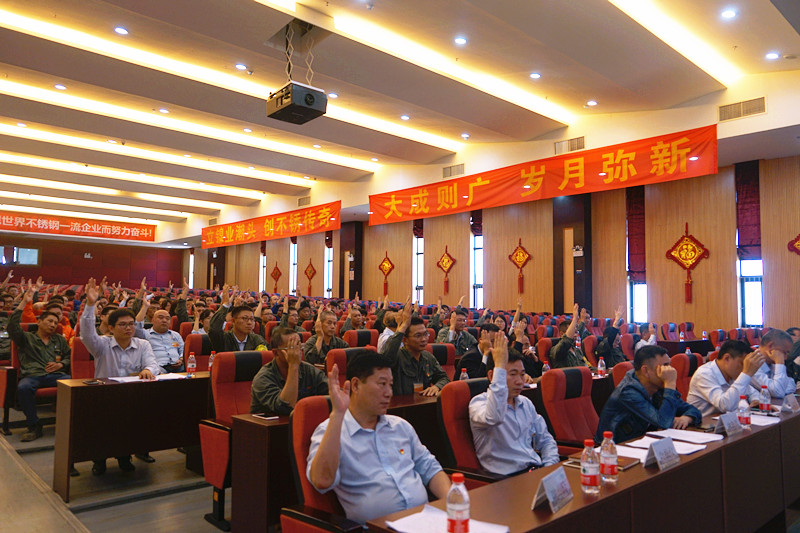 上午10时,会议在激昂雄壮的国歌声中,正式拉开帷幕。党委成立筹备工作领导小组组长王磊同志宣读了《关于中共广东广青金属科技有限公司总支部委员会调整为党委并设立纪委的通知》及《关于召开中共广东广青金属科技有限公司委员会成立选举大会的批复》,并代表公司上一届党总支作了题为《坚持强根铸魂,戮力同心,为创建世界一流不锈钢企业而努力奋斗》报告,报告全面回顾了公司过去三年的工作,总结了三年来的工作经验,深入分析了党组织建设存在的不足和公司面临的新形势,提出了未来五年的发展目标和工作任务。随后各党支部分组讨论报告。