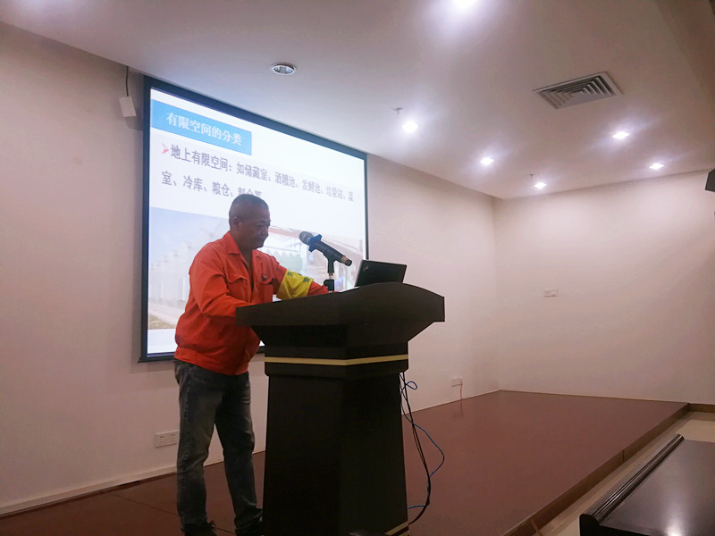 有限空间是一个封闭或部分封闭,与外界相对隔离,出入口较为狭窄,作业人员不能长时间在内工作,自然通风不良,易造成有毒有害、易燃易爆物质积聚或者氧含量不足的空间。为让大家更加了解有限空间安全作业的重要性,培训分为两部分进行,一是组织参加人员观看有限空间作业事故案例警示宣传片,装备部副部长蔡晓景在观看前要求大家认真学习东莞市“2·15”气体中毒事故教训;二是由安环部部长关永海围绕有限空间作业的危险特性及分析、安全防护措施,并结合公司有限空间作业点、主要气体成分知识及事故应急处置等内容进行讲解。课堂上,关永海指出,有限空间作业场所发生事故时救援难且易扩大,大家一定要遵守有限空间场所作业的管理规定及注意事项,提升安全作业意识。