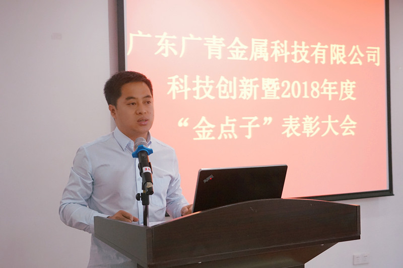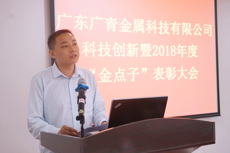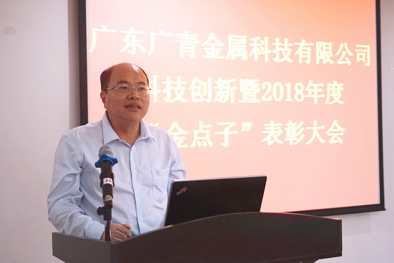 为鼓励创新,表彰先进,总结公司2018年度科技创新取得的主要成绩,部署2019年科技创新发展的工作重点,充分发挥科技创新对公司发展的支撑和引领作用,不断推动公司高质量发展,4月25日,广青科技在公司综合楼电教室召开科技创新暨2018年度“金点子”表彰大会。公司部门负责人以上领导及技术骨干100多人参加了会议。